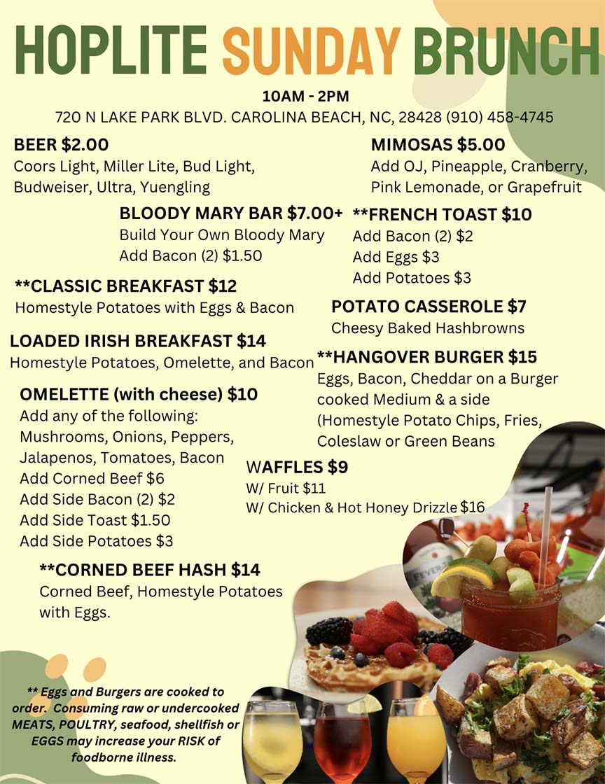 **Eggs and Burgers are cooked to order. Consuming raw or undercooked meats, poultry and seafood, shellfish or eggs may increase your risk of food-borne illness.
